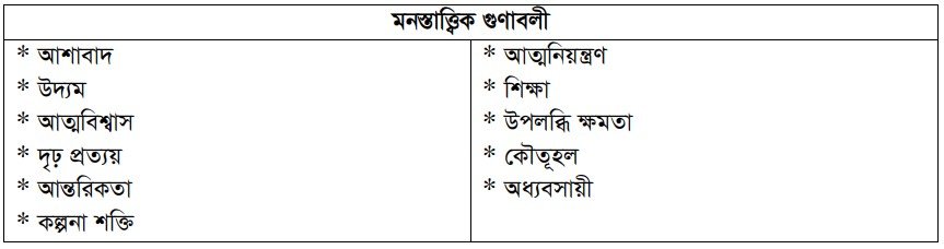 ২। মনস্তাত্ত্বিক গুণাবলী (Psychological Qualities)